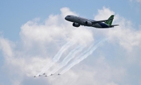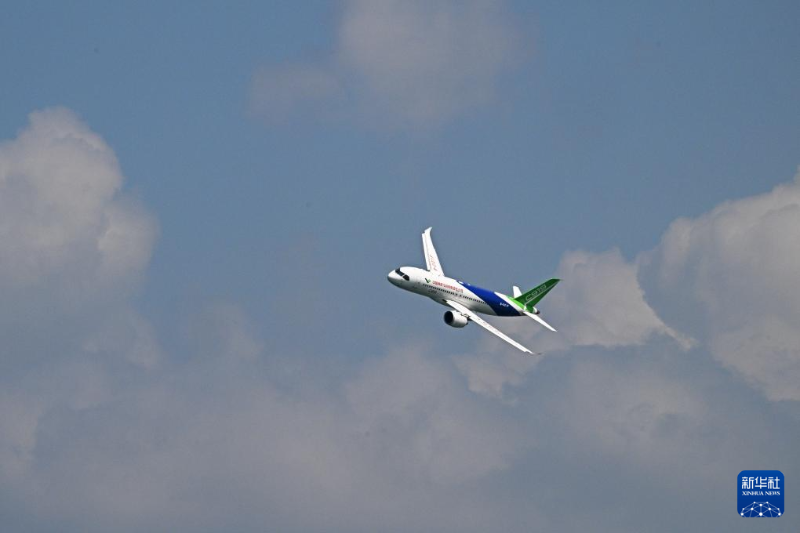 2月18日,中國(guó)國(guó)產(chǎn)大型客機(jī)C919在新加坡航展開(kāi)幕前進(jìn)行預(yù)演飛行。