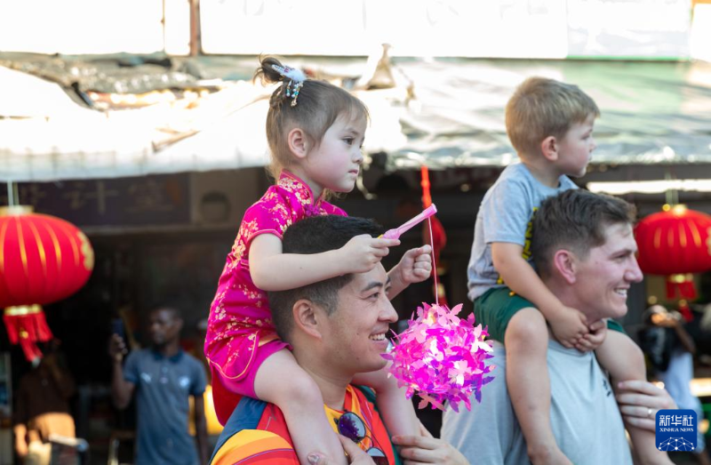 2月17日,游客在南非約翰內(nèi)斯堡唐人街觀看表演。