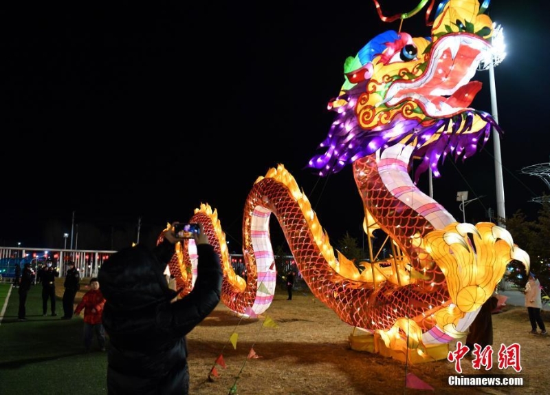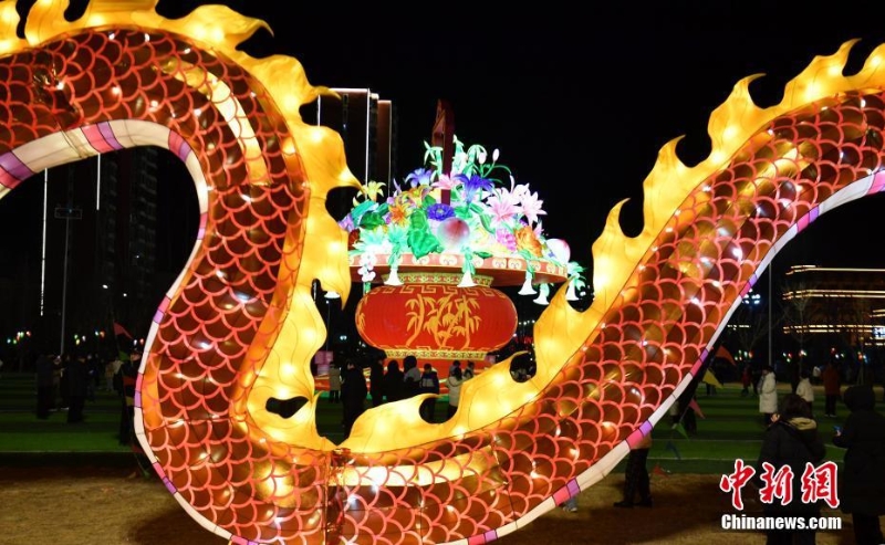 2月19日,河北雄安新區(qū)安新縣元宵燈會(huì)在安新縣大健康體育公園亮燈啟幕。燈會(huì)現(xiàn)場(chǎng)以傳統(tǒng)燈籠為氛圍,設(shè)置“龍騰盛世”“盛世花籃”“年年有余”“福祿壽”等大型燈組。圖為“龍騰盛世”燈組。中新社記者 韓冰 攝