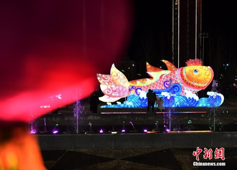2月19日,河北雄安新區(qū)安新縣元宵燈會(huì)在安新縣大健康體育公園亮燈啟幕。燈會(huì)現(xiàn)場(chǎng)以傳統(tǒng)燈籠為氛圍,設(shè)置“龍騰盛世”“盛世花籃”“年年有余”“福祿壽”等大型燈組。圖為元宵燈會(huì)現(xiàn)場(chǎng),民眾觀看“年年有余”燈組。中新社記者 韓冰 攝
