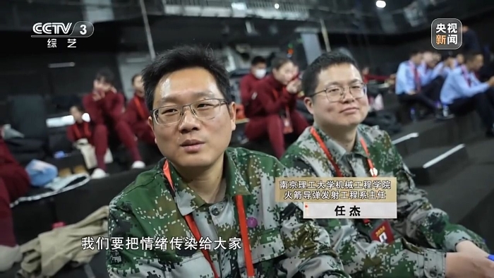 南京理工大學(xué)機(jī)械工程學(xué)院火箭導(dǎo)彈發(fā)射工程系主任 任杰:你看我們穿的這個服裝跟國防是相關(guān)的,而且又是演的貝塔這個角色,都應(yīng)該為它去增添光彩。我們在走廊里面不在乎大家的目光,雖然文藝表演不是我們的專長,但是我們拿出真誠的態(tài)度,因為回想小時候看動畫片多幸福,小時候蹦蹦跳跳唱的時候,要把情緒傳染給大家。