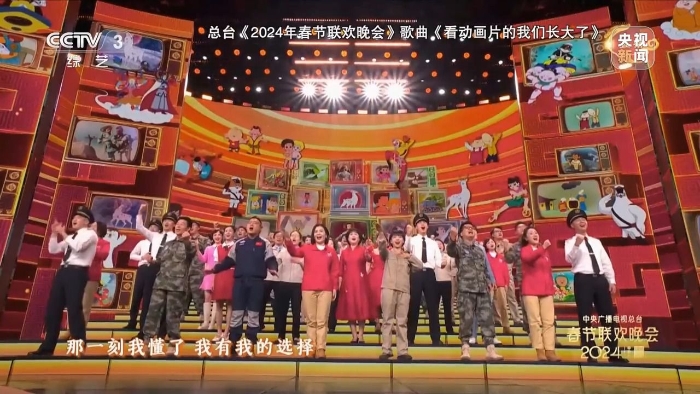 今年的總臺春晚有一首與動畫片有關(guān)的歌曲節(jié)目,從開飛機(jī)坦克的舒克貝塔到探索自然之謎的海爾兄弟,這些經(jīng)典國產(chǎn)動畫片中的主角伴隨著幾代人度過了美好的童年,也為許多孩子埋下了職業(yè)夢想的種子。春晚舞臺上來自各行各業(yè)的勞動者,用演唱經(jīng)典動畫片主題曲的方式訴說著自己成長故事。
