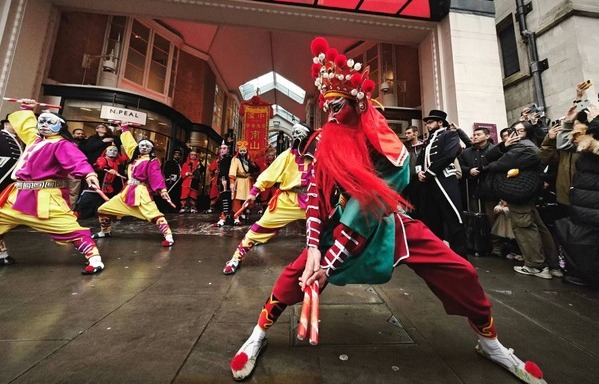 2月10日至11日,來(lái)自中國(guó)廣東的國(guó)家級(jí)非遺代表性項(xiàng)目普寧英歌舞在倫敦市中心伯靈頓拱廊和特拉法加廣場(chǎng)精彩亮相,用颯爽的舞姿為英國(guó)倫敦的新春慶典活動(dòng)頻添亮色。