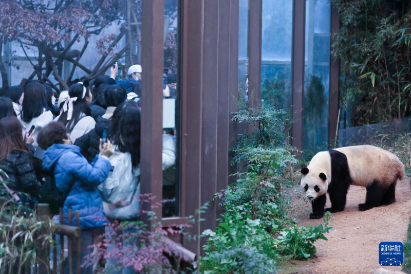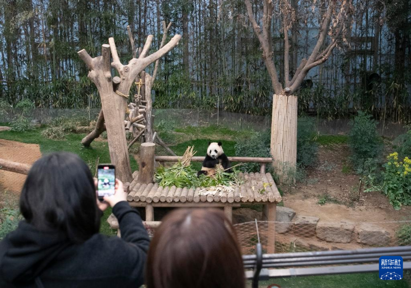 2月20日,韓國民眾在韓國愛寶樂園參觀大熊貓福寶。