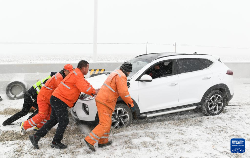 2月20日,在甘肅省酒泉市阿克塞哈薩克族自治縣境內(nèi),一輛前往新疆方向的機動車困在雪中,甘肅省酒泉公路事業(yè)發(fā)展中心阿克塞公路段與阿克塞路政部門對被困車輛施救。
