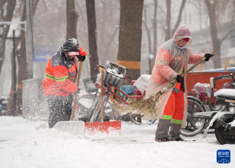 2月20日,環(huán)衛(wèi)工人在河北省石家莊市橋西區(qū)清雪。