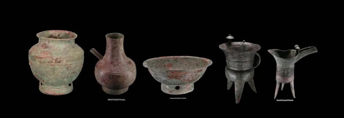 M2出土銅罍、盉、盤(pán)、斝、爵(M2 :1、2、23、3、8)