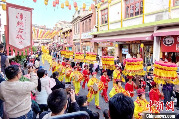 2月16日,“龍騰祥年”漳臺民俗巡游活動在漳州古城上演。中新社記者 張金川 攝