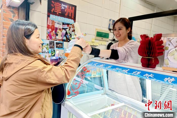 2月19日,游人在漳州古城里的“創(chuàng)意手工冰棒”小店買冰棒。廖珍妹 攝