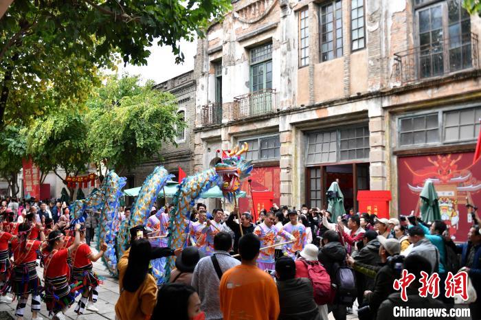 今年春節(jié),潮汕英歌舞再次火“出圈”,主辦方特邀廣東潮汕英歌舞團(tuán)隊(duì)為此次民俗文化節(jié)助陣,只見市民、游客紛紛舉起手機(jī)拍照留念。