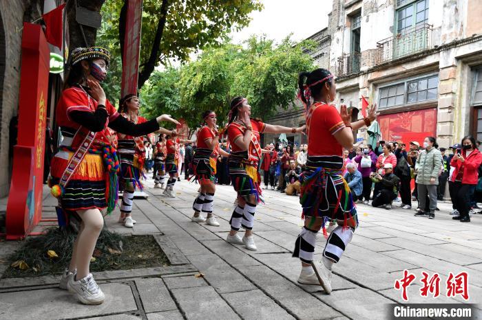 傳統(tǒng)民俗活動(dòng)在古色古香的古厝里上演,前來觀看的市民、游客絡(luò)繹不絕。臺(tái)灣中華少數(shù)民族藝術(shù)文創(chuàng)促進(jìn)會(huì)理事長(zhǎng)朱王碧玉帶著十余位臺(tái)灣少數(shù)民族姑娘在活動(dòng)上載歌載舞,引得眾多市民、游客圍觀。“希望能夠更好地傳承中華優(yōu)秀傳統(tǒng)文化。”朱王碧玉如是說道。
