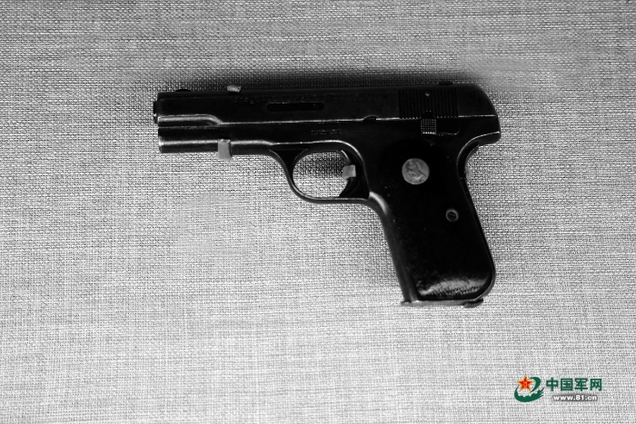 中國人民革命軍事博物館展出的美國造柯爾特M1903式手槍。梁耀曦 攝