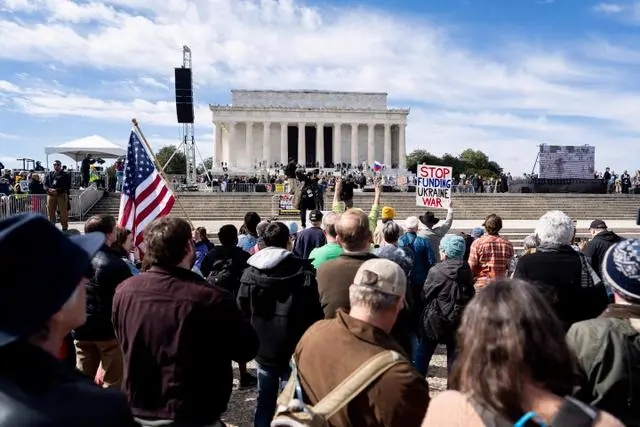 2月19日,美國上千名反戰(zhàn)人士午在華盛頓市的林肯紀(jì)念堂前舉行集會(huì),齊聲高喊。來源:新華社