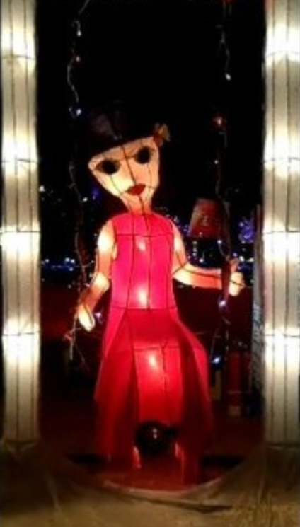 2017年高雄燈會,一花燈作品被指撞臉恐怖片角色“紅衣小女孩”。圖片來源:臺灣社交媒體