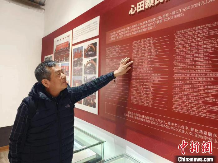 在賴瀚鐘的帶領下,臺灣云林賴氏宗親一行人參觀“心田賴氏裔孫遷居臺灣開基名錄”,在看到“14世登芳公,遷居臺灣云林,原籍心田”,遷臺祖先“登芳公”名字赫然在列時,賴父難掩激動之情?!斑@就是我的祖先,我們的根”,他手指名錄上祖先名字,讓同行的人為其拍照記錄下歷史性一刻。