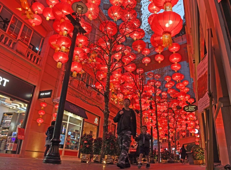 1月31日,香港灣仔利東街掛滿紅燈籠。新華社記者 陳鐸 攝