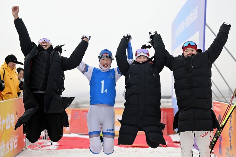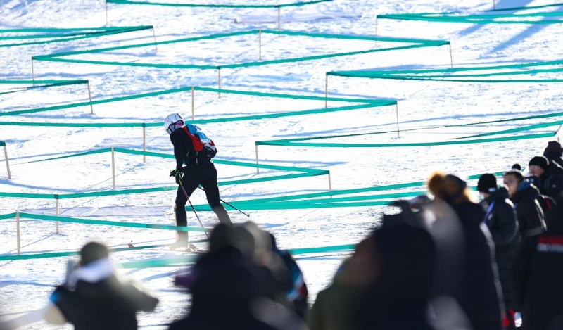 2月1日,第十四屆全國冬季運動會滑雪登山公開組混合接力比賽在內(nèi)蒙古呼倫貝爾市扎蘭屯金龍山滑雪場舉行。新華社記者 王楷焱 攝