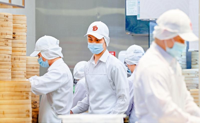 圖:島內(nèi)工業(yè)和服務(wù)業(yè)職缺超過20萬個。圖為臺北一間餐廳的廚房人員工作情形。