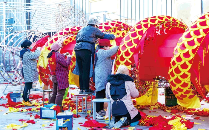▲ 太原市橫渠村花燈匠人制作“龍燈” 聶行明 攝