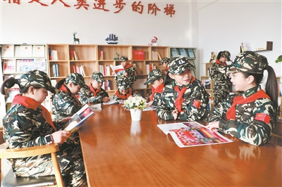 二月中旬,安徽省蕭縣軍地聯(lián)合組織“少年軍?!睂W(xué)生開展軍營(yíng)體驗(yàn)活動(dòng),教育引導(dǎo)小學(xué)生增強(qiáng)國(guó)防意識(shí),厚植國(guó)防情懷。圖為小學(xué)生在部隊(duì)閱覽室閱讀書籍。