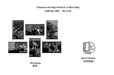 香港郵政2月29日宣布,將于3月14日發(fā)售一套以“金庸小說(shuō)人物II——俠之大者”為題的特別郵票及相關(guān)郵品。