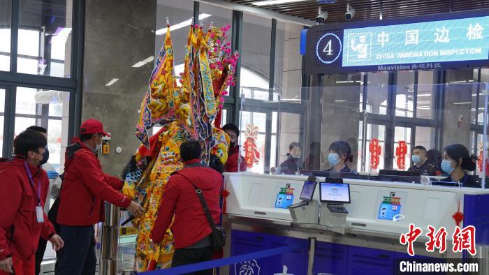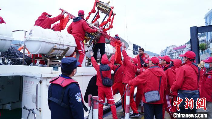 3月2日,馬祖進(jìn)香團成員在福州連江黃岐口岸攜神像辦理入境通關(guān)手續(xù)。林燕霞 攝
