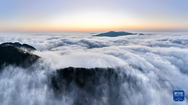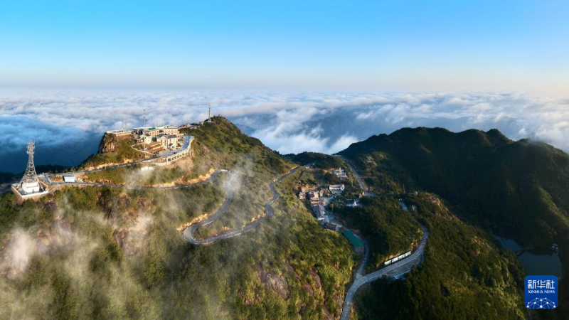3月3日拍攝的福建戴云山脈云海景觀(無(wú)人機(jī)全景照片)。