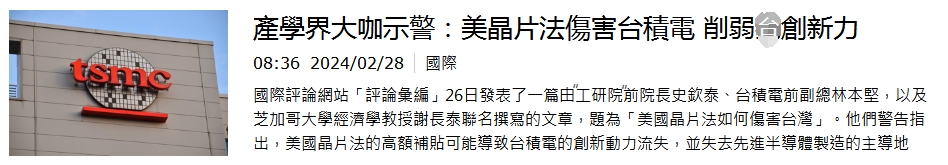 臺積電被削弱 民進黨難辭其咎