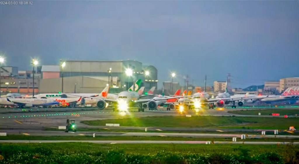 臺(tái)灣桃園國(guó)際機(jī)場(chǎng)南跑道3日起進(jìn)行年度維修,不論是起飛或降落班機(jī)都有延誤情況。(截圖自桃園智慧旅游云直播影片/臺(tái)灣“中時(shí)新聞網(wǎng)”)