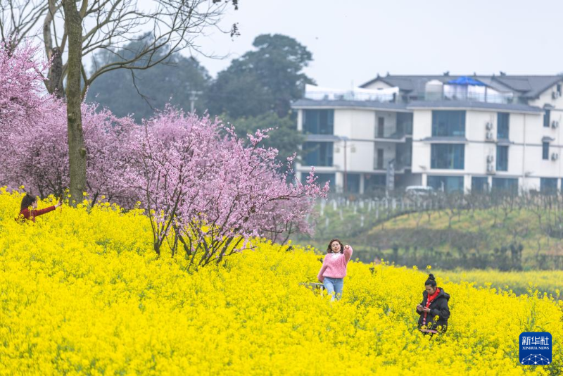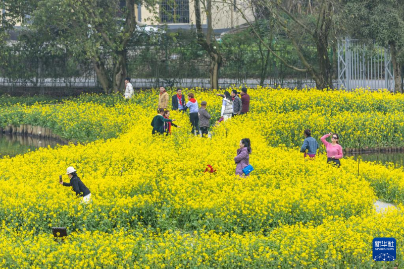 3月5日,游客在重慶市巴南區(qū)二圣鎮(zhèn)集體村云林天鄉(xiāng)景區(qū)觀賞油菜花。