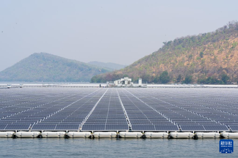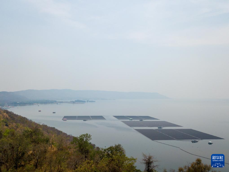 這是3月5日拍攝的泰國孔敬府烏汶叻水面漂浮光伏電站(無人機照片)。