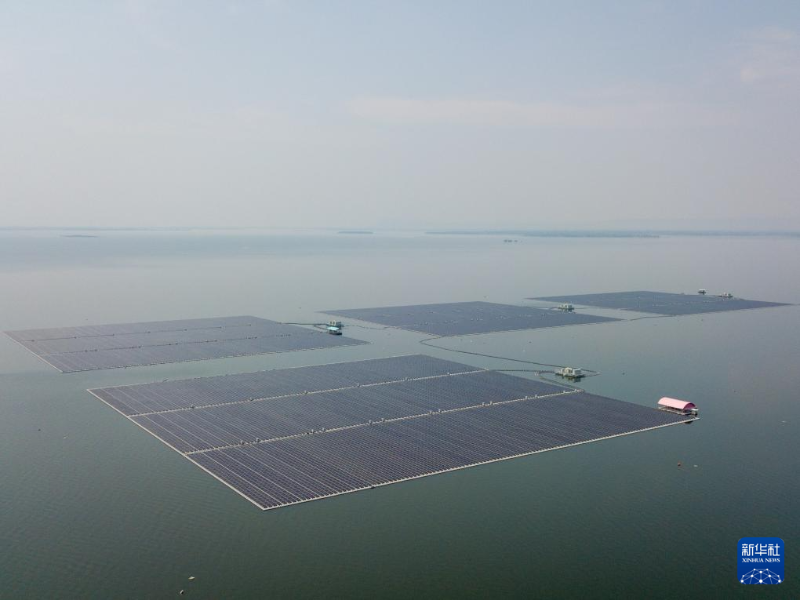這是3月5日拍攝的泰國孔敬府烏汶叻水面漂浮光伏電站。