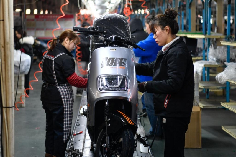 1月24日,工人在河南省汝南縣立馬新能源電動車產(chǎn)業(yè)園生產(chǎn)線上組裝車輛。新華社記者吳剛攝