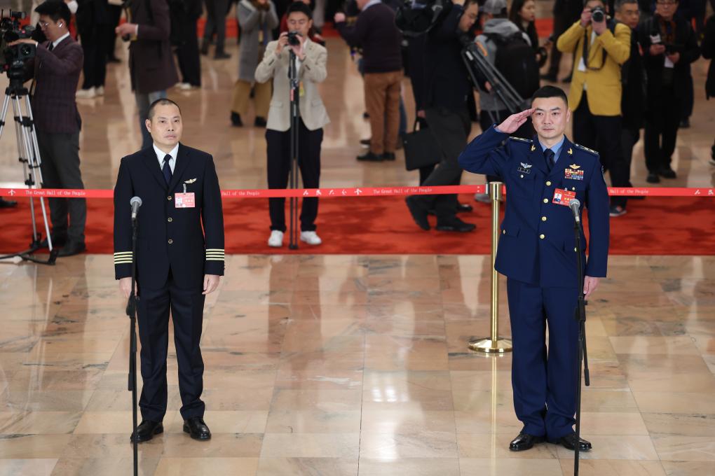 一位是曾獲空軍“金頭盔”榮譽的空軍航空兵某旅副參謀長高中強,一位是被譽為“中國民航英雄機長”的中國民用航空飛行學(xué)院總飛行師劉傳健,當(dāng)這兩位來自藍天的全國人大代表走上“代表通道”時,滿滿的安全感撲面而來。