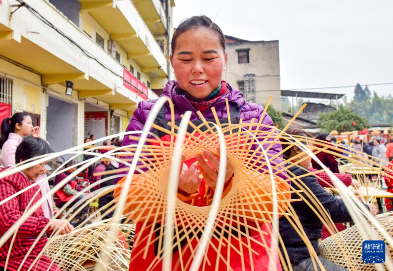 3月5日,四川省南充市高坪區(qū)的竹編藝人在參加非遺竹編技藝展示活動。