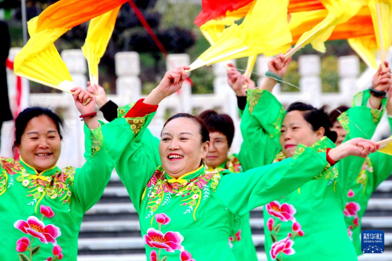 3月6日,在湖北省十堰市鄖陽區(qū)文化廣場,老年舞蹈隊在表演舞蹈。