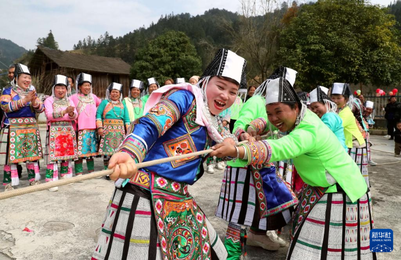 3月6日,村民在貴州省榕江縣三江水族鄉(xiāng)冷衣村進行拔河比賽。