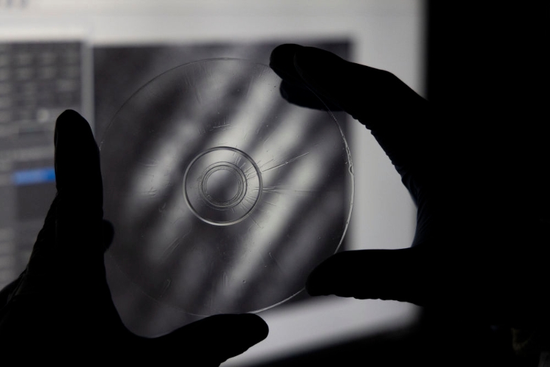 2024年2月29日在上海光機(jī)所光學(xué)實(shí)驗(yàn)室拍攝的“超級(jí)光盤”。2月21日,中國(guó)科學(xué)院上海光學(xué)精密機(jī)械研究所對(duì)外宣布存儲(chǔ)容量是普通光盤上萬(wàn)倍、普通硬盤上百倍的“超級(jí)光盤”誕生。據(jù)計(jì)算,十幾張“超級(jí)光盤”就可以存儲(chǔ)下整個(gè)國(guó)家圖書館的數(shù)據(jù)量。