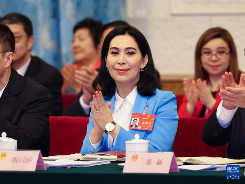 3月7日,米娜瓦爾·艾比布拉代表在十四屆全國(guó)人大二次會(huì)議新疆代表團(tuán)全體會(huì)議上。