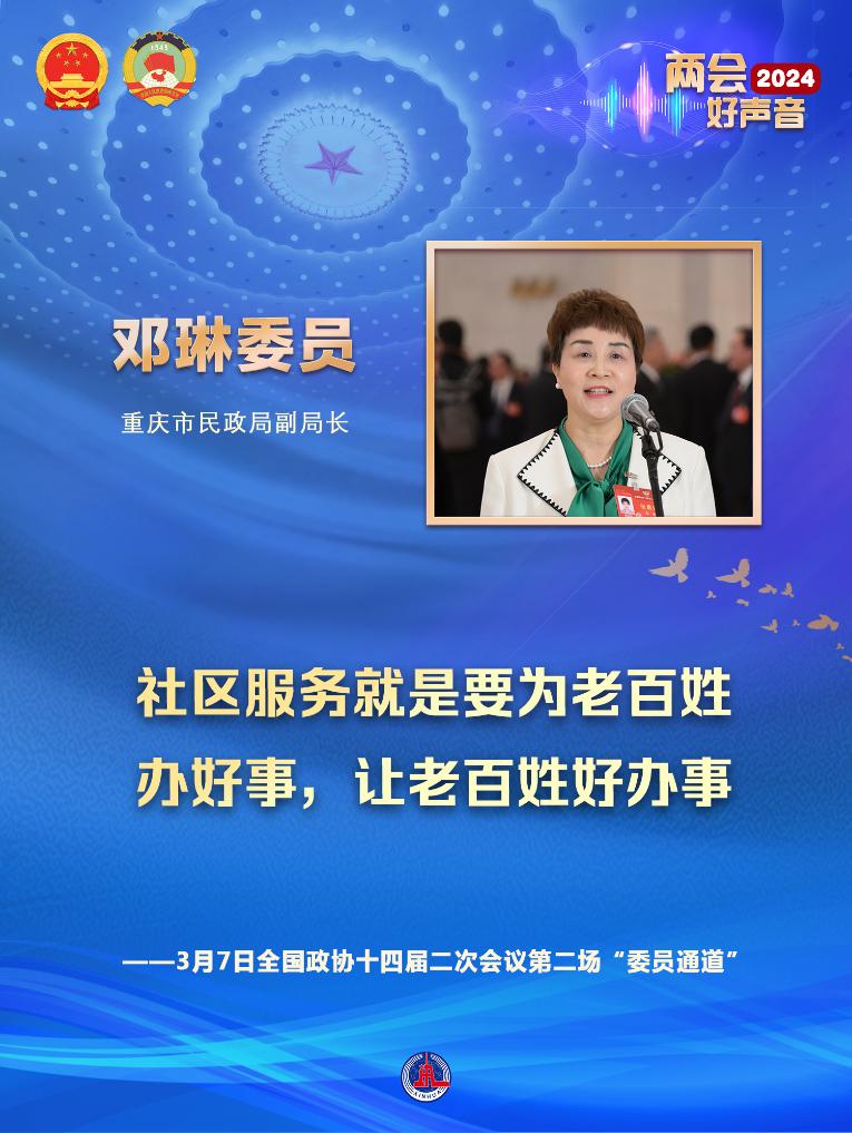 “家門口”的服務(wù)直接關(guān)乎老百姓的獲得感、幸福感。“社區(qū)服務(wù)就是要為老百姓辦好事,讓老百姓好辦事?!敝貞c市民政局副局長(zhǎng)鄧琳委員說(shuō),現(xiàn)在重慶的社區(qū)基本都有了黨群服務(wù)中心,還著力打造一刻鐘便民生活圈,針對(duì)老人、兒童、特殊困難群體等提供相關(guān)服務(wù)。在她看來(lái),社區(qū)服務(wù)供給需要多方協(xié)同發(fā)力,相信未來(lái)會(huì)有更多可觸可感的為民便民安民服務(wù)送到百姓家門口。