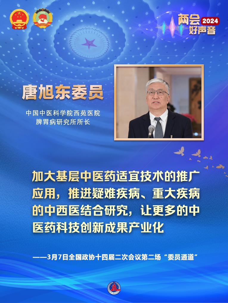 中國(guó)中醫(yī)科學(xué)院西苑醫(yī)院脾胃病研究所所長(zhǎng)唐旭東委員認(rèn)為,擦亮中醫(yī)藥這塊“金字招牌”,要加強(qiáng)中藥材及中藥飲片各環(huán)節(jié)的系統(tǒng)質(zhì)量管理,讓老百姓吃上放心藥、吃上好中藥;加大基層中醫(yī)藥適宜技術(shù)的推廣應(yīng)用,推進(jìn)疑難疾病、重大疾病的中西醫(yī)結(jié)合研究,讓更多的中醫(yī)藥科技創(chuàng)新成果產(chǎn)業(yè)化。