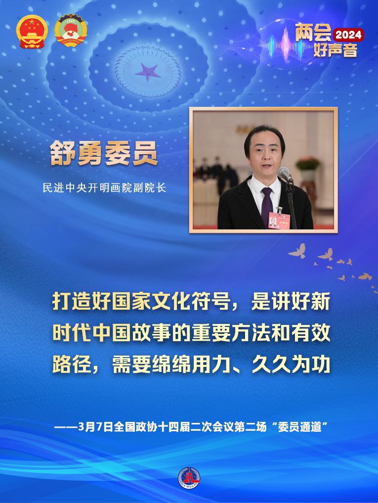 如何讓世界各國(guó)人民感受中華文明的魅力,民進(jìn)中央開明畫院副院長(zhǎng)舒勇委員有著自己的思考。