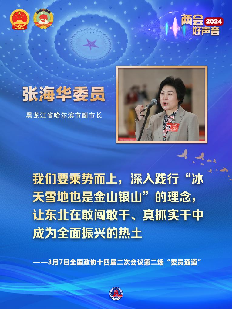 “人山人海的冰雪大世界、人頭攢動(dòng)的中央大街,讓我們真切感受到中國(guó)經(jīng)濟(jì)持續(xù)回升向好的濃濃暖意?!焙邶埥」枮I市副市長(zhǎng)張海華委員談到“爾濱”走紅和“冰雪熱”,充滿信心地說(shuō),“我們要乘勢(shì)而上,深入踐行‘冰天雪地也是金山銀山’的理念,讓東北在敢闖敢干、真抓實(shí)干中成為全面振興的熱土?!?/p>