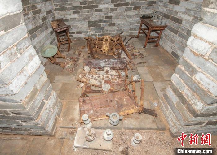中新網(wǎng)太原3月7日電(記者 胡健)山西省考古研究院7日對(duì)外發(fā)布考古新發(fā)現(xiàn),當(dāng)?shù)乜脊湃藛T在山西省忻州市發(fā)現(xiàn)一座保存完好的明代紀(jì)年墓葬,墓室內(nèi)設(shè)有木質(zhì)供臺(tái)和桌椅等,桌上還有硯臺(tái)、毛筆、筆架等文房用品。