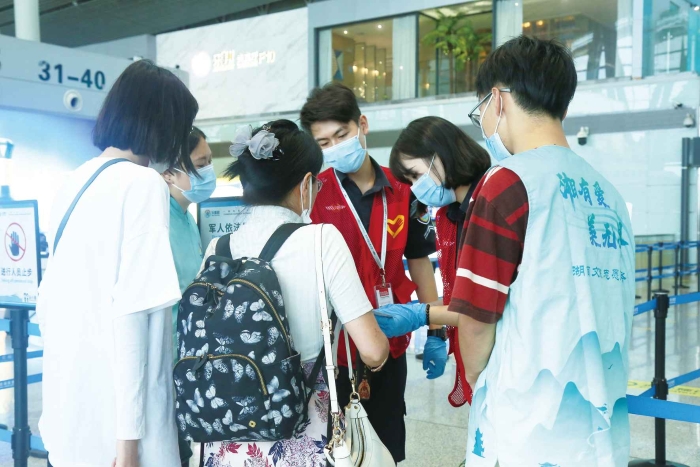 ▲ 湖南高校文旅志愿者假日高峰時期在長沙黃花機場服務(wù) 湖南省文化和旅游廳供圖