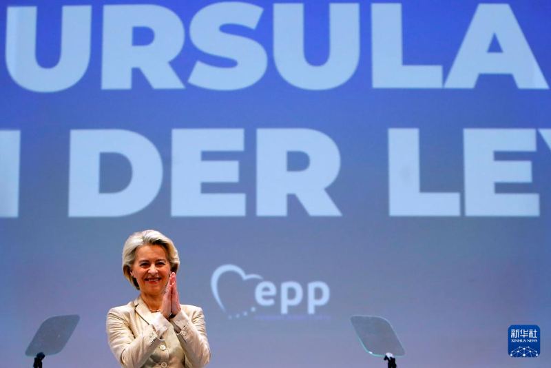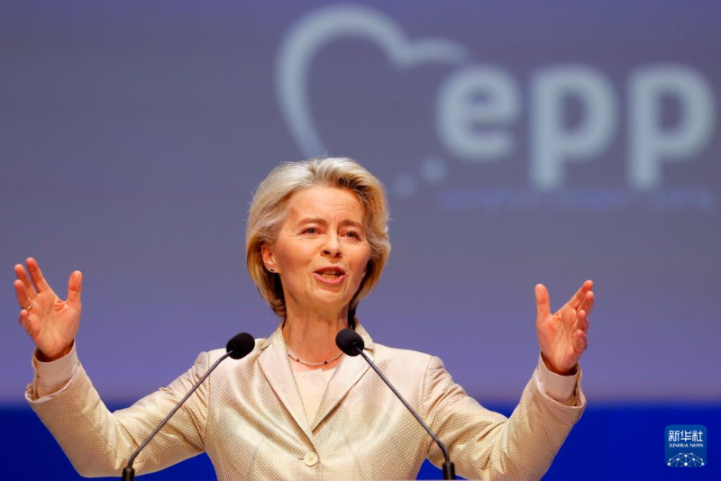 3月7日,在羅馬尼亞首都布加勒斯特,歐洲聯(lián)盟委員會(huì)主席烏爾蘇拉·馮德萊恩發(fā)表講話。歐洲人民黨7日在羅馬尼亞首都布加勒斯特進(jìn)行了黨主席的選舉,決定提名現(xiàn)任歐洲聯(lián)盟委員會(huì)主席烏爾蘇拉·馮德萊恩為領(lǐng)銜候選人,代表該黨參加6月的歐洲議會(huì)選舉。新華社發(fā)(克里斯泰爾攝)