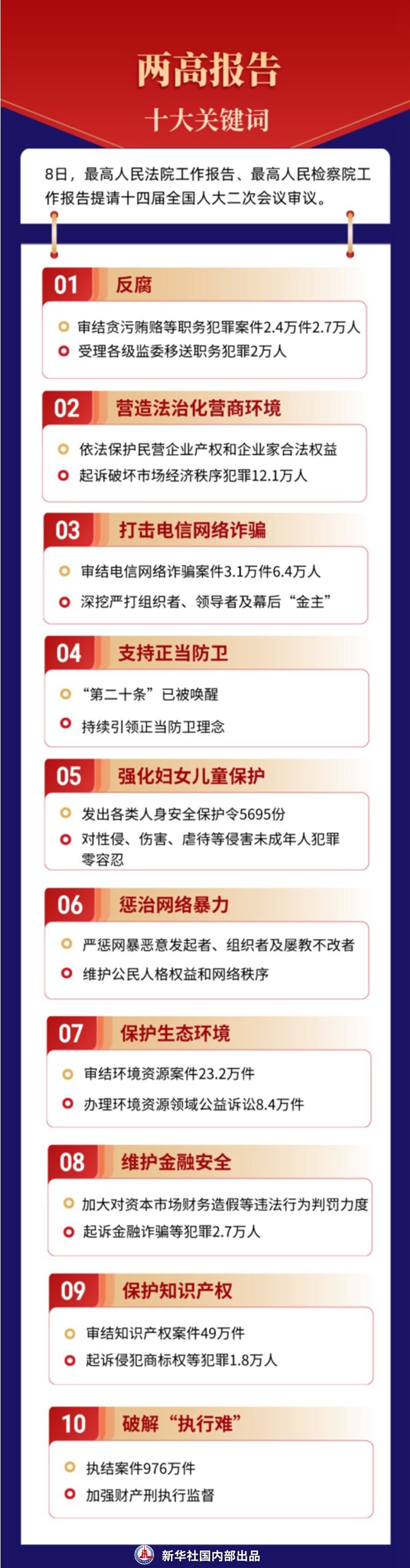 ??新華社北京3月8日電 題:十大關(guān)鍵詞解讀兩高報(bào)告