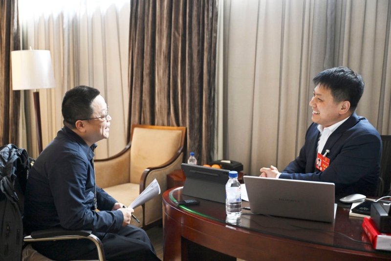 3月7日,舒勇委員在全國(guó)政協(xié)十四屆二次會(huì)議第二場(chǎng)“委員通道”集體采訪活動(dòng)上接受媒體采訪。新華社記者 李賀 攝
