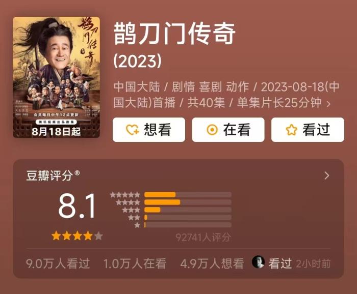 而近年來,武俠劇走出了改編新道路。爆款《山河令》《蓮花樓》《且試天下》,表現(xiàn)不俗的《少年歌行》《少年游之一寸相思》等作品都改編自后金庸時代的武俠小說;口碑佳作《鵲刀門傳奇》《一念關(guān)山》等則屬于原創(chuàng)劇本,武俠新力量持續(xù)收割武俠新受眾。