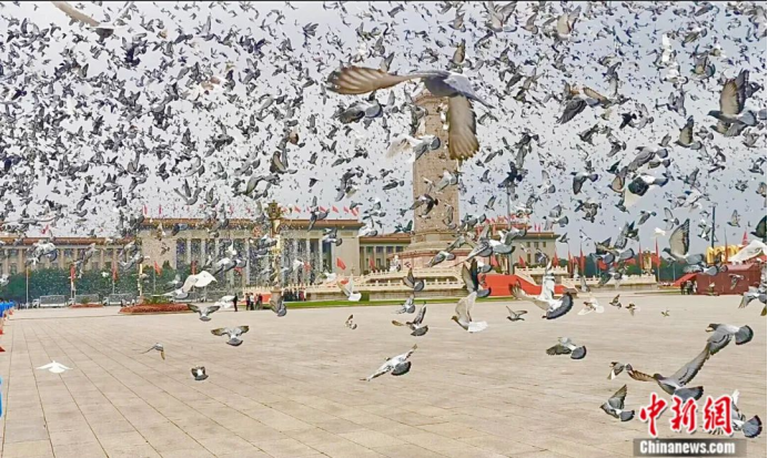 2021年是中國共產(chǎn)黨建黨100周年。在7月1日的慶祝大會上,10萬羽和平鴿被放飛。中國信鴿協(xié)會供圖